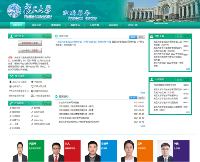 复旦大学迎新工作服务管理系统于2006年8月正式上线,于2014年整体升级。系统为秋季入学的研究生、本科生和高职生提供入学事项公告、宿舍申请、班级信息、网上缴费、校园卡拍照、新生调研问卷填写、新生入学教育测试、家庭困难生申请、银行卡办理申请等服务。针对研究生和高职生的宿舍申请,方便管理部门合理优化宿舍资源,通过系统高效地完成了宿舍分配工作。新生在报到之前就可以查询到分班、住宿安排以及费用缴纳情况,体现了学校以学生为本、优化资源配置、提高服务质量的教育和管理理念。