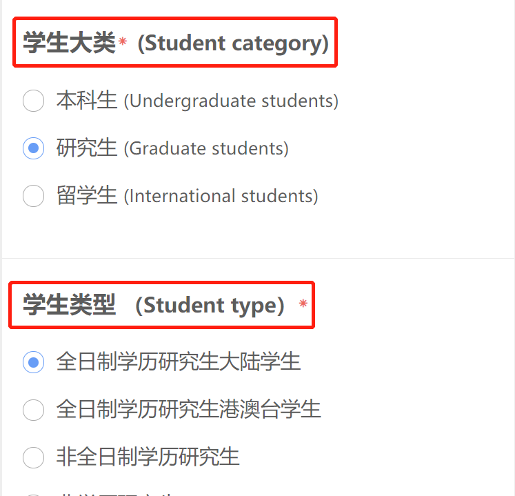 请先选择“学生大类”和“学生类型”。