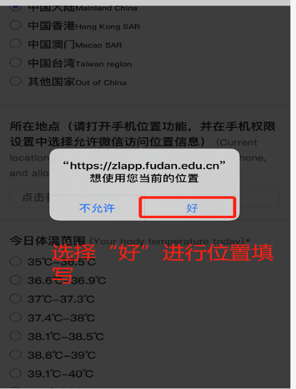 A:如在填写所在地点选项中无法获取地理位置,请确认打开手机位置功能,并在手机权限设置中选择允许微信访问位置信息。如依然不能获取地址请尝试将服务关闭后重新开启或者尝试重启微信应用/手机。