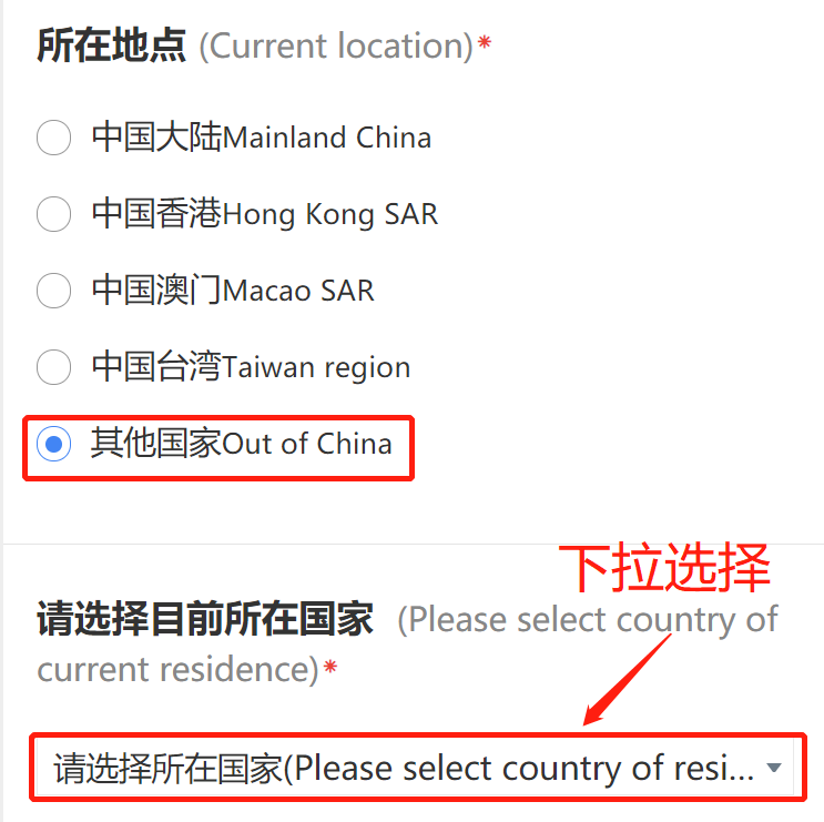 选择“其他国家”,则进行下拉选择;